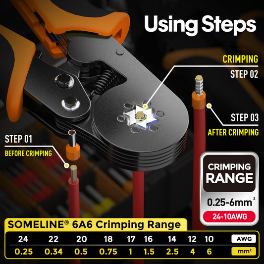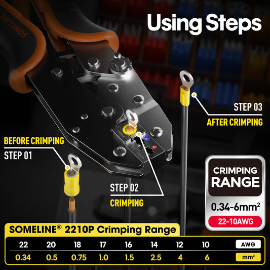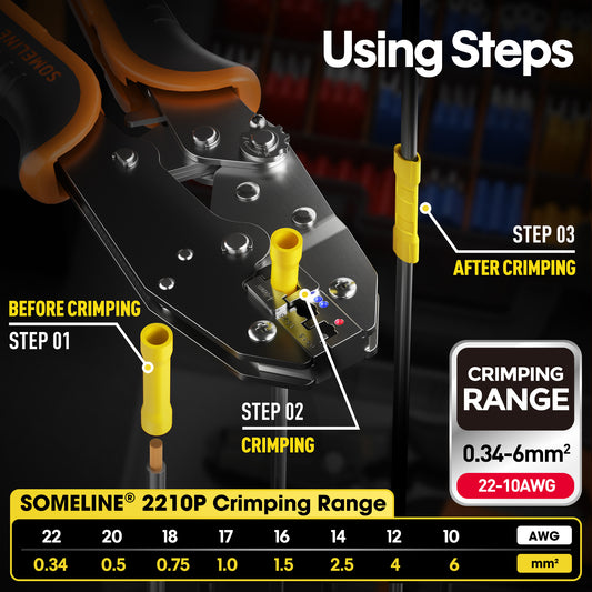SOMELINE® Isoliertes Kabelschuh-Crimpwerkzeug-Set, Crimpzangen-Set mit 3 Größen Draht-Crimp-Klemme, Crimp-Kabelschuhe-Set, Stoßstecker-Klemme für 0,34–6 mm² (AWG 22–10) Elektrokabel