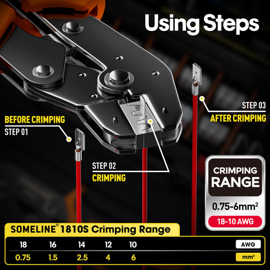 SOMELINE® Wire Terminal Crimping Tool Kit, Crimping Tool Set with 18 Sizes Wire Connector Set, Crimp Plier 0.75-6mm²(AWG 18-10) Non-Insulated Open Barrel Terminals Wire Splices Brass Spade Connecto