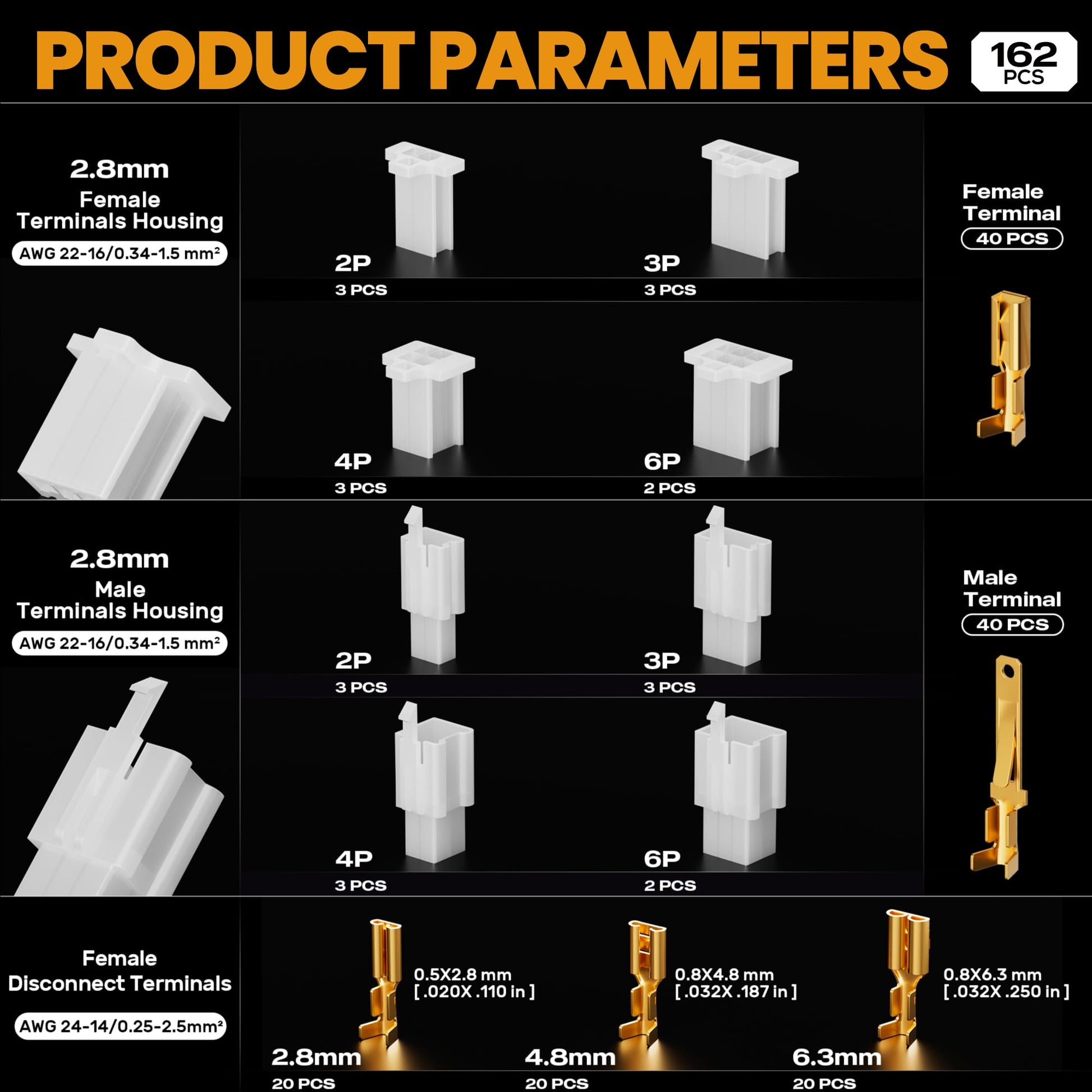 Automotive Connector Kit: 2/3/4/6-pin 2.8mm automotive connector plugs and sockets for 24-14 AWG wires