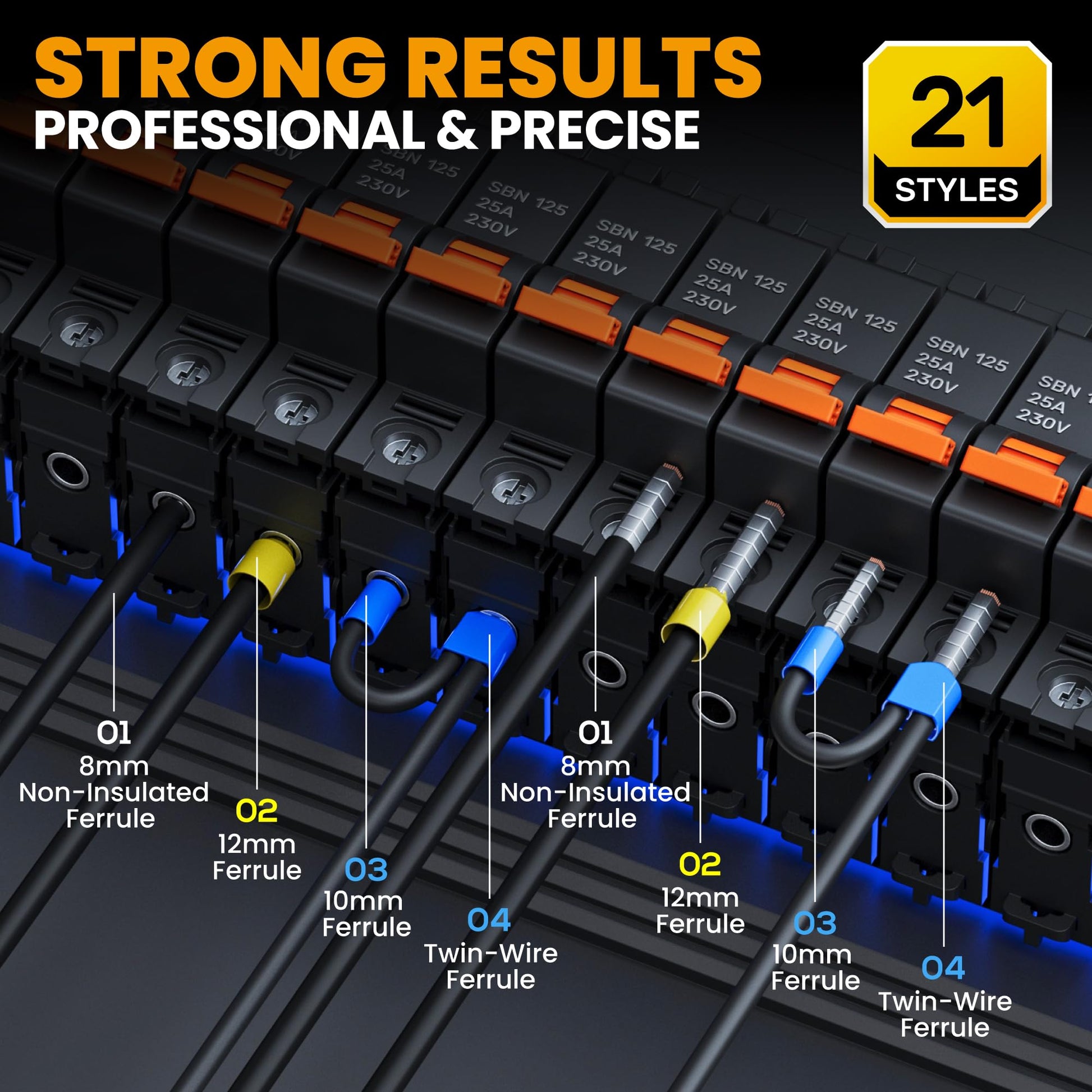 21 Kinds of Ferrules: Including 21 types wire terminals connectors and a storage box. suitable for AWG 24-8 wire. enough quantity and different length can meet all your needs. The ferrule is made of high-quality tinned copper and nylon insulating sleeve, ensuring excellent electrical conductivity and high corrosion resistance. Widely used in a variety of occasions