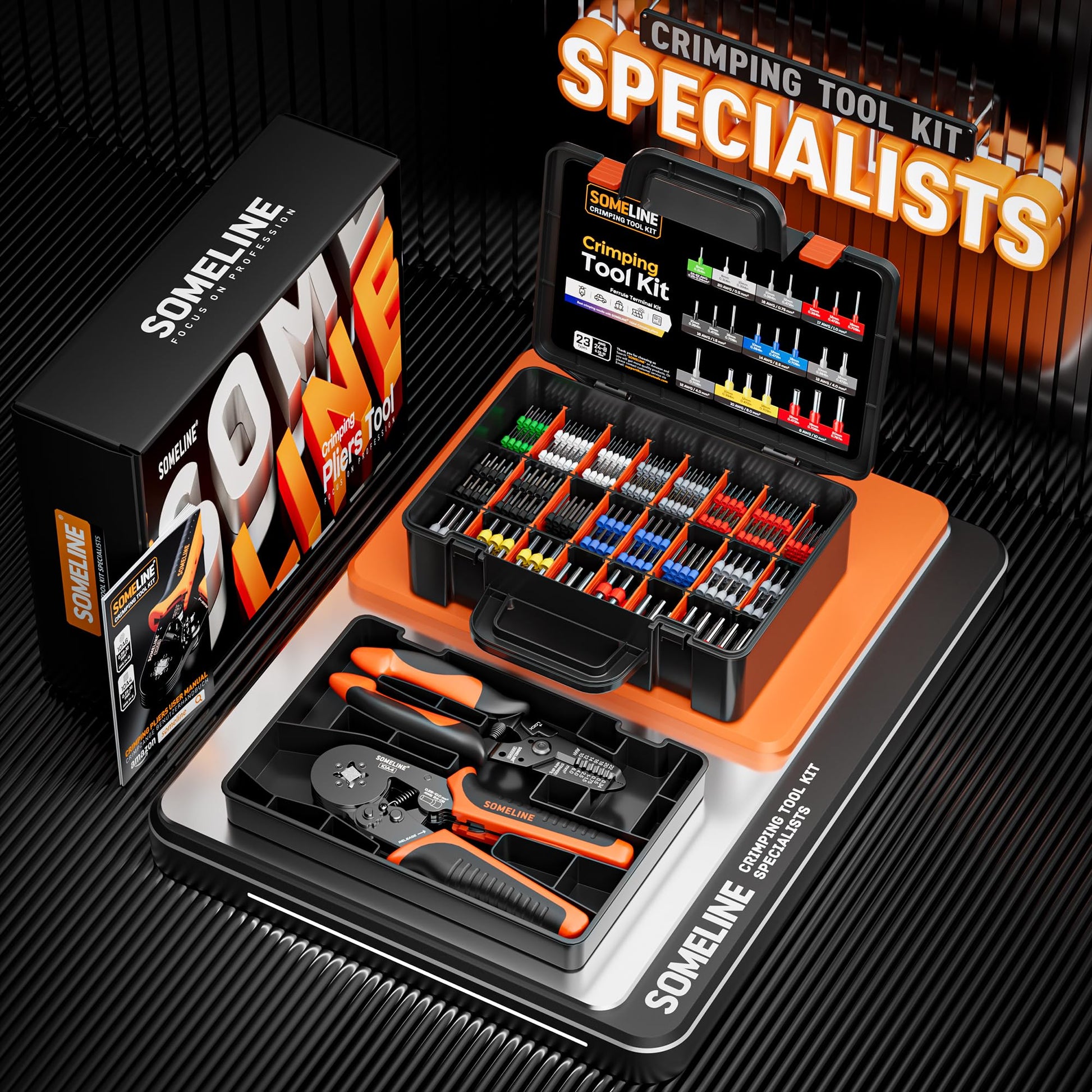 SOMELINE® Ferrule Crimping Tool, Ratchet Pliers for AWG24-8 with 23 Sizes Wire End Ferrule Terminals, Quadrilateral Wire Crimp Pliers with Crimp Connectors,Crimp Pliers and Stripper Kit Crimp Connector