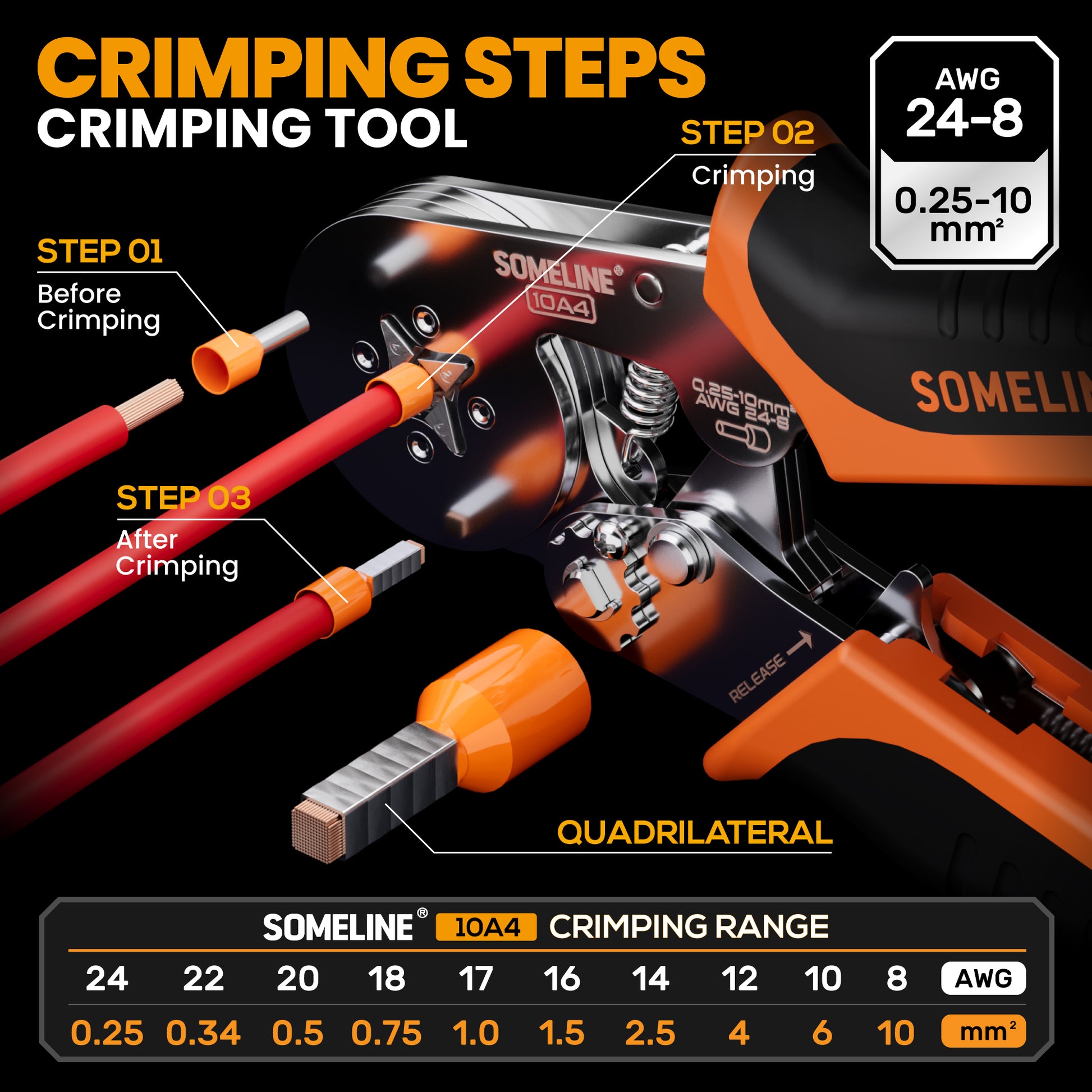 SOMELINE® Ferrule Crimping Tool Kit, 36 Sizes Ferrules, AWG 24–8 Crimper, with Square Pliers and Automatic Wire Stripper, Terminal Assortment Stackable Box