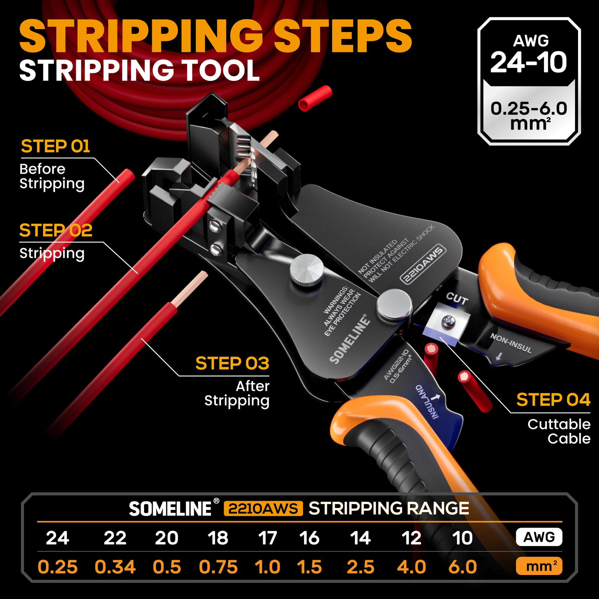 Automatic Stripping Tool: Precise, labor-saving, and fast wire insulation stripping, suitable for cables from 0.34–6 mm². Provides more convenient and faster stripping services
