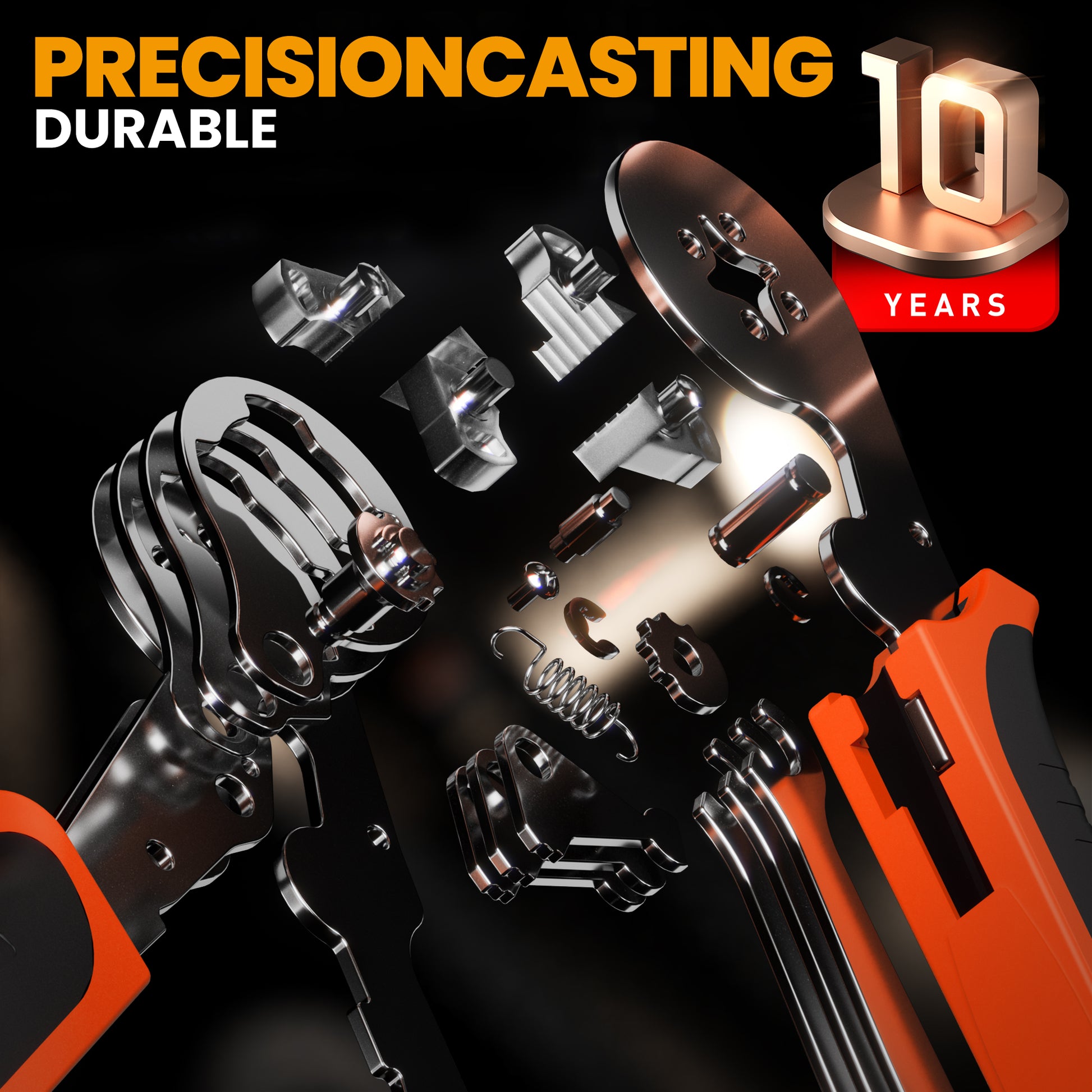 Professional Crimping Tool: The crimping pliers feature an efficient ratchet mechanism and professional crimping jaws. With adjustable crimping force and quick-release function. Ergonomic anti-slip handle for added comfort